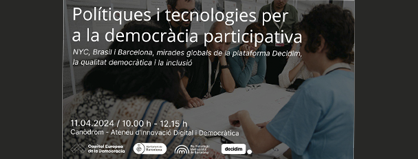 En aquesta sessió es compartiran reflexions i experiències entorn dels reptes digitals de la democràcia participativa a partir de tres experiències internacionals articulades a través de la plataforma Decidim: Brasil, Nova York i Barcelona, destacant reptes, límits i potencialitats de cadascun.